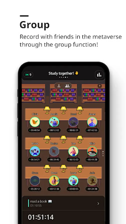 There are various themes such as classrooms, libraries, offices, fitness places and others. Group member statistics.