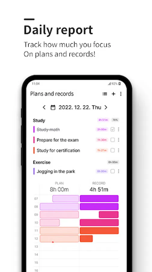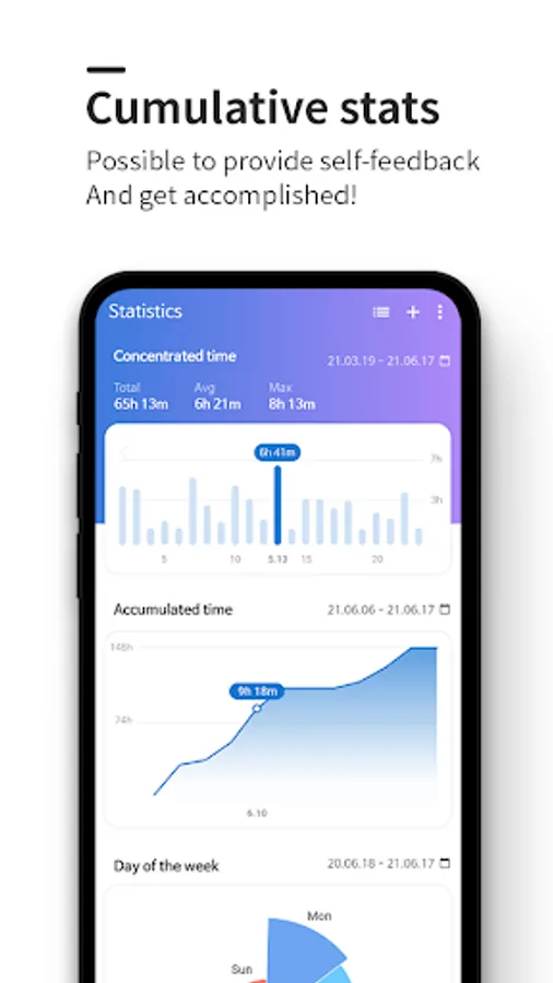 It's not end with record! Analyze your concentration time in detail with various graphs and charts!