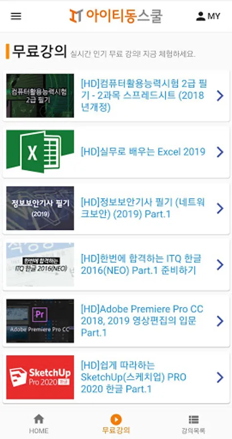 Various practical lectures such as MS Word, PowerPoint, Excel and Hancom Office are also available.