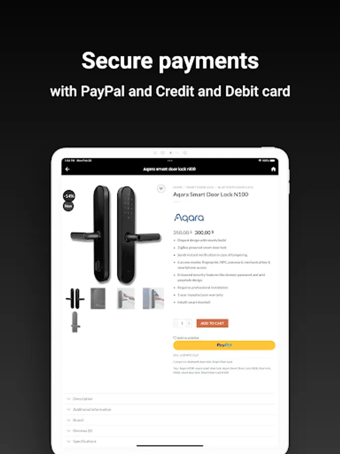 Hello, dear user! Now you are in the app of the best online eCommerce for buying security appliances like smart door locks, smart gateways, cameras, sensors and many more...