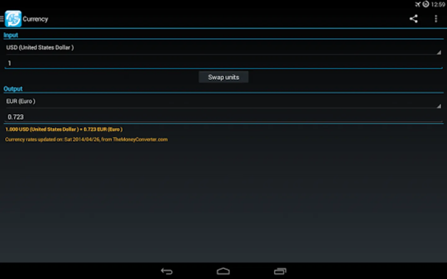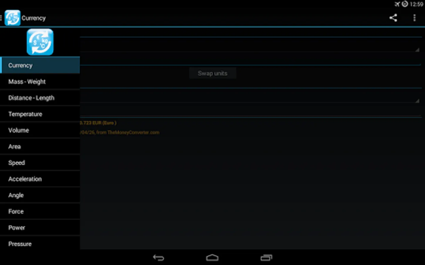 Unit Converter & Currency Rates is a simple but powerful tool. With this converter app you will always have the right conversions for more than 50 different units in one click. It has a built-in currency converter, so you will never mess up with your money.