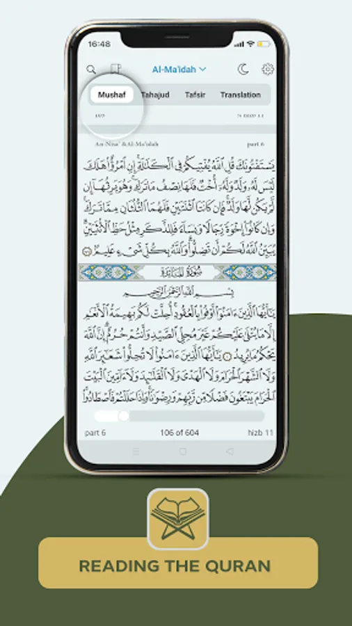 • Enlarge the Qur’an page: In landscape view, the page is enlarged by the width of the screen.
