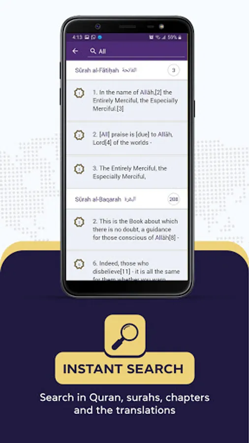 - Instant and quick search for surah names, chapters and holy Qurān's text.