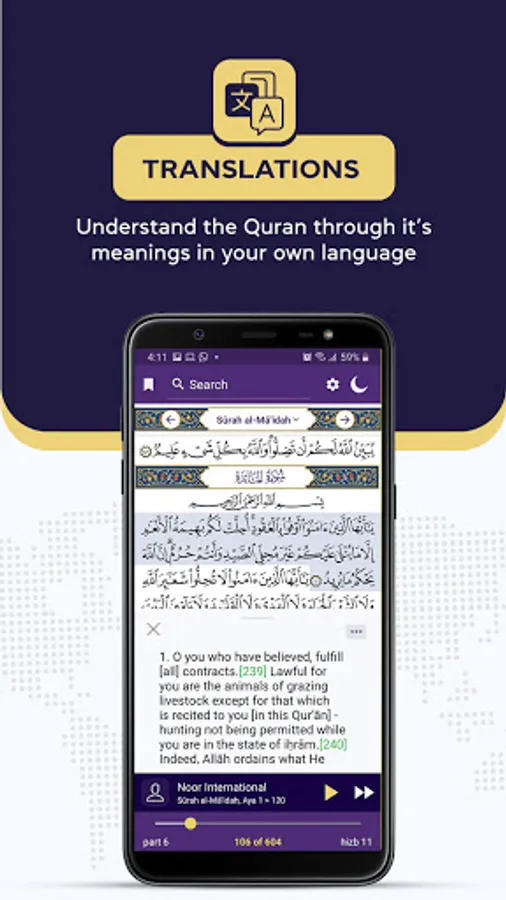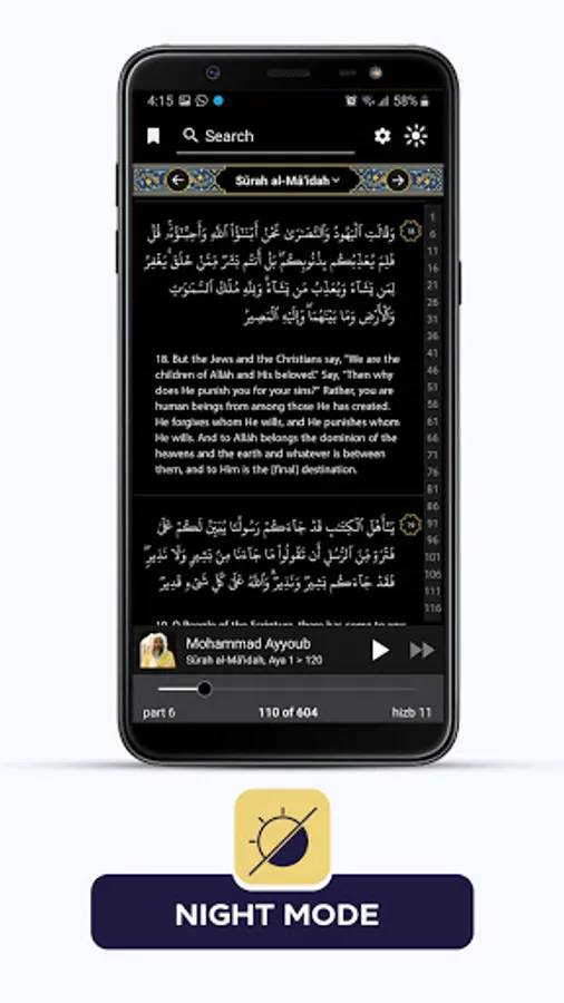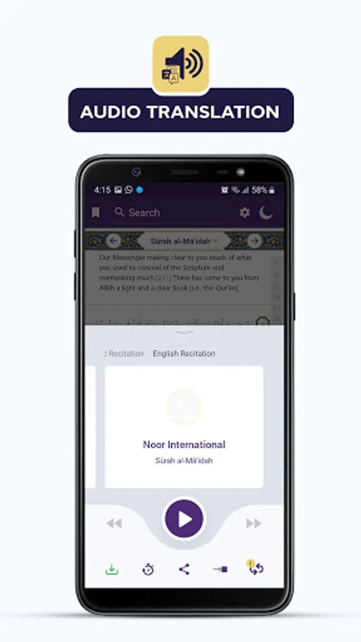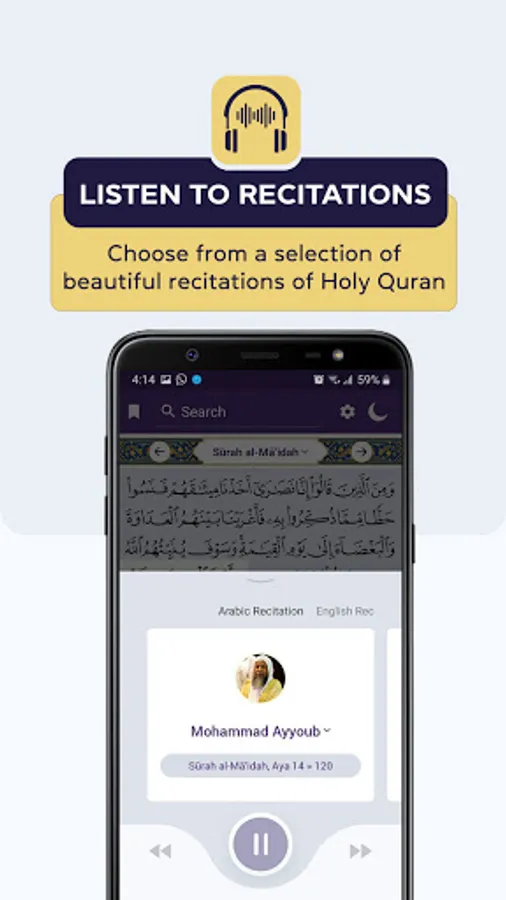 - An advanced audio player with features such as repeating the verse or range of verses, timer and others.