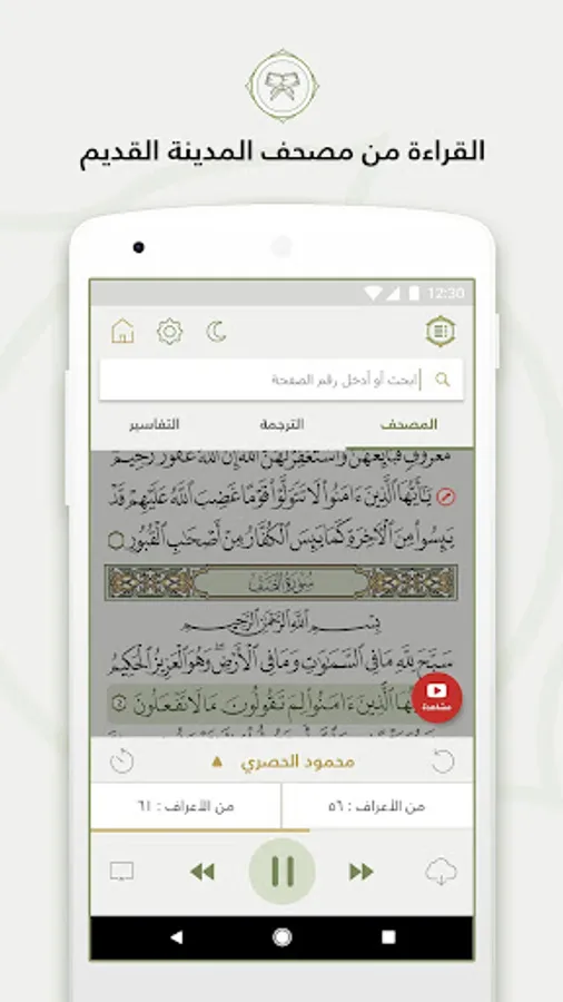 * Read Quran in "Hafs" narration, with Othmani font, from the original King Fahd printed copy.