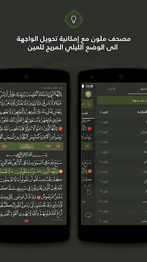 * Browse the Quran index, select among parts and parties; an easier way to follow-up to your daily commitment of reading.