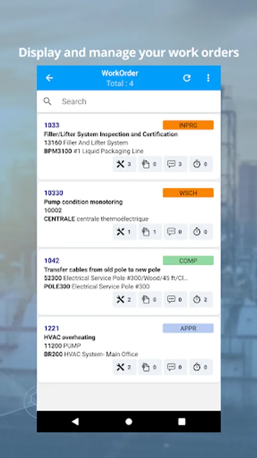 − Increase their efficiency by easily creating their tasks, specifying assets and locations, adding the scope of work, manpower, materials and tools required