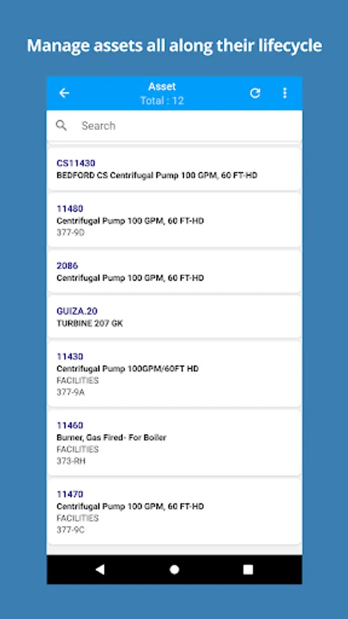 − Manage assets all along their lifecycle, and specify their information such as parent, location, vendor and status