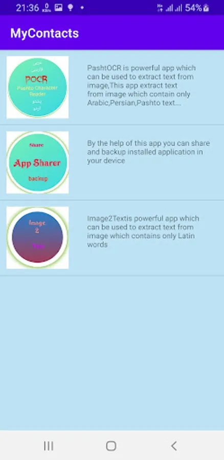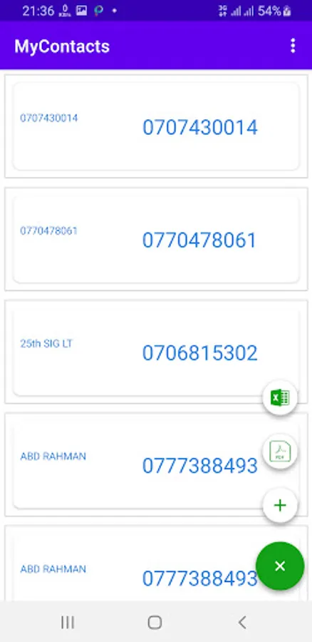 MyContacts is a simple app which show all your saved contacts , after showing you can save them in excel and pdf files