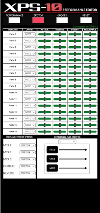 Attack, Release, Cuttof and Resonance for each part of the performance.