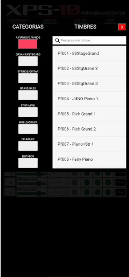 Library with all Xps10 Patches with search system and automatic keyboard change.