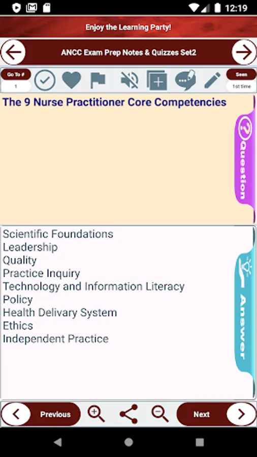 With ANCC Exam Review you can study smarter, not longer. You can take advantage of studying in even in short time of free time. This App strive to value your memories, your skills, test your understanding extend your reasoning and summaries your thoughts or apply the new information.