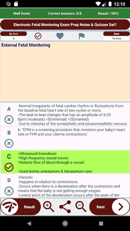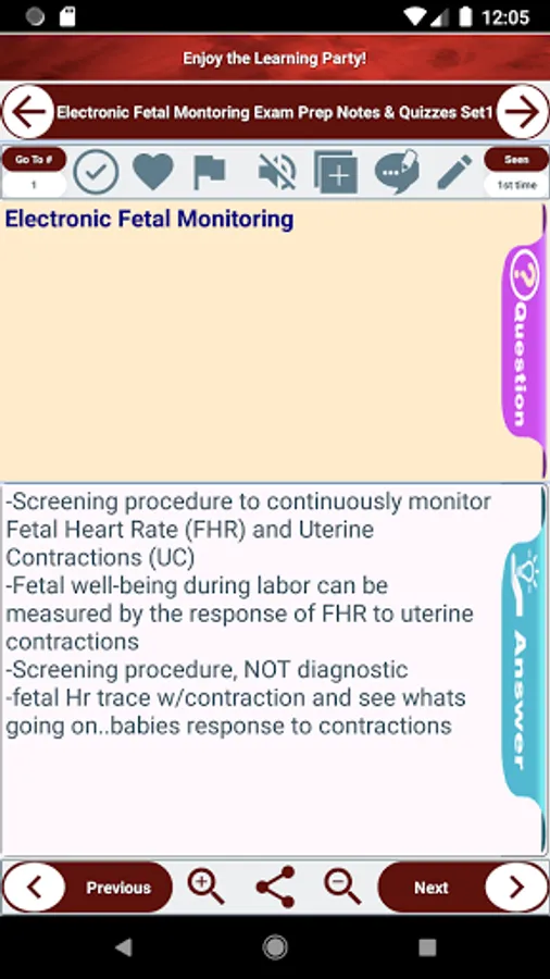 With Electronic Fetal Monitring Exam Review you can study smarter, not longer. You can take advantage of studying in even in short time of free time. This App strive to value your memories, your skills, test your understanding extend your reasoning and summaries your thoughts or apply the new information.