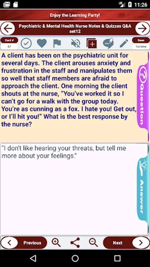 Psychiatric & Mental Health Nursing Exam Prep app strive to value your memories, your skills, test your understanding, extend your reasoning and summaries your thoughts or apply the new information.