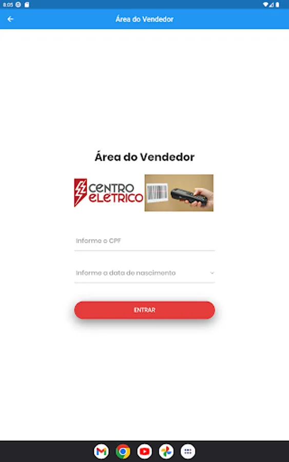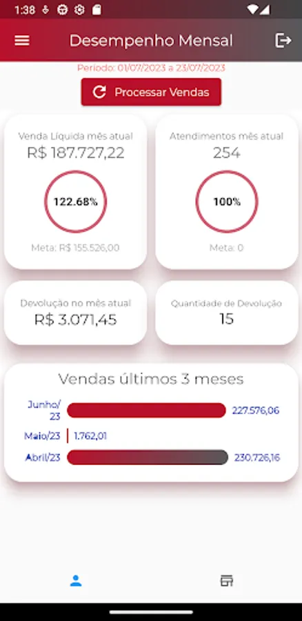 Application for employees of the Centro Elétrico Company to monitor sales performance in their workplace (physical space). The query requires the employee's internal registration in the system used by the company, hosted locally.