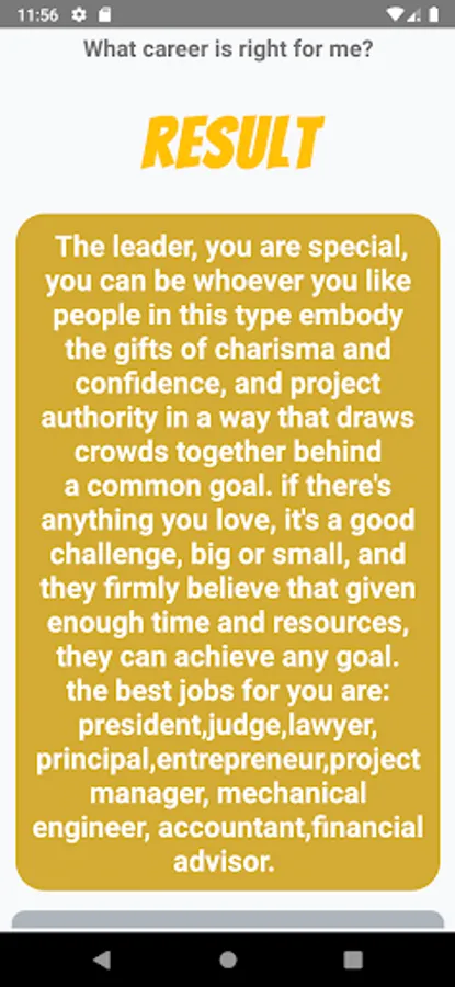 Take this personality tests and find out your careers, and match your result with your friends and family,