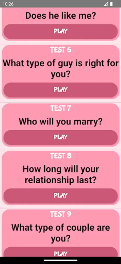 There are more than 35 quiz about love and relationship and personality and more different topics and more are coming soon.