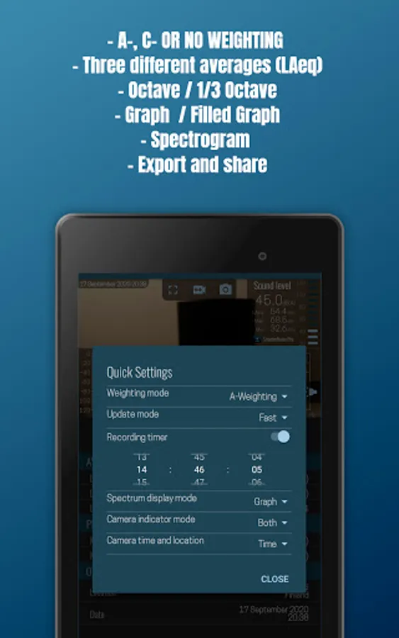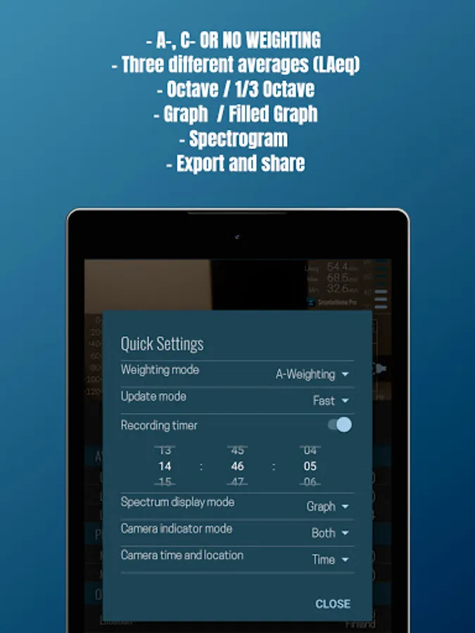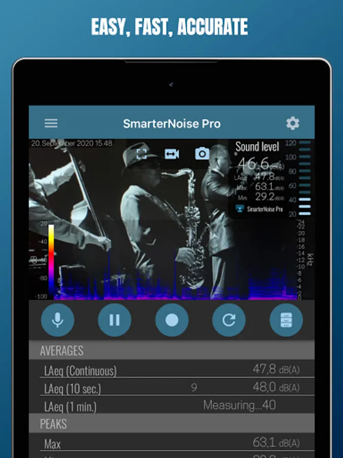 Features of SmarterNoise Pro - sound meter analyzer recorder: