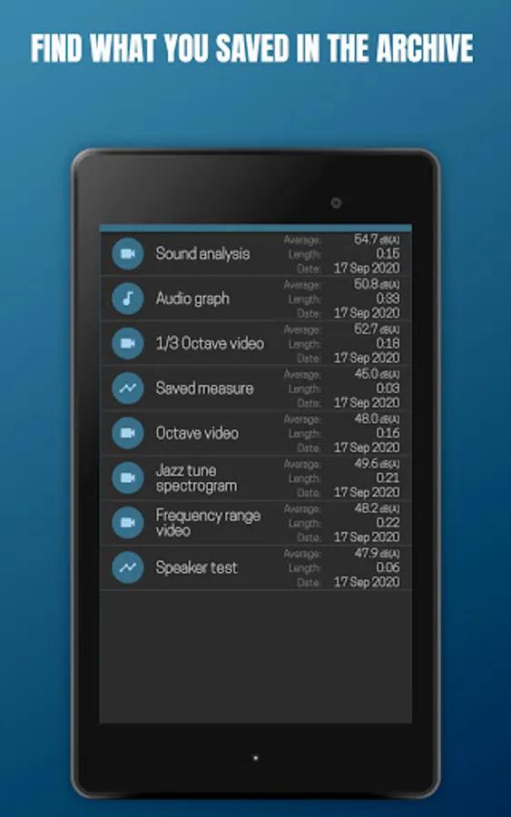 • Sound level measurement in audio mode