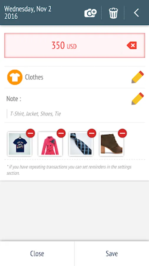 - add image functionality - attach receipts or images with purchased products - helps you better identify your expenses
