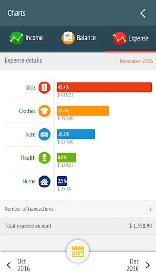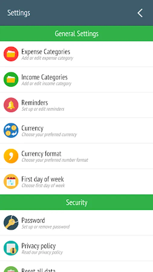 Manage your money, track your expenses and organize your savings with ease by taking advantage of some of the great features that this application provides:
