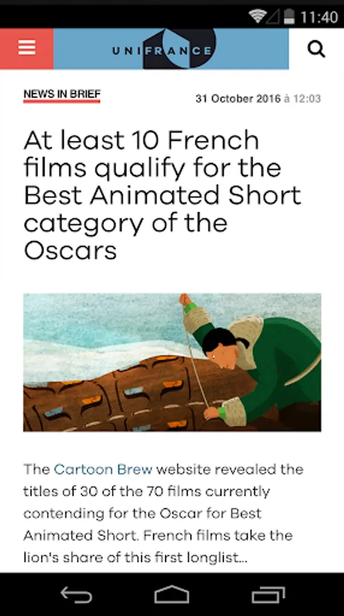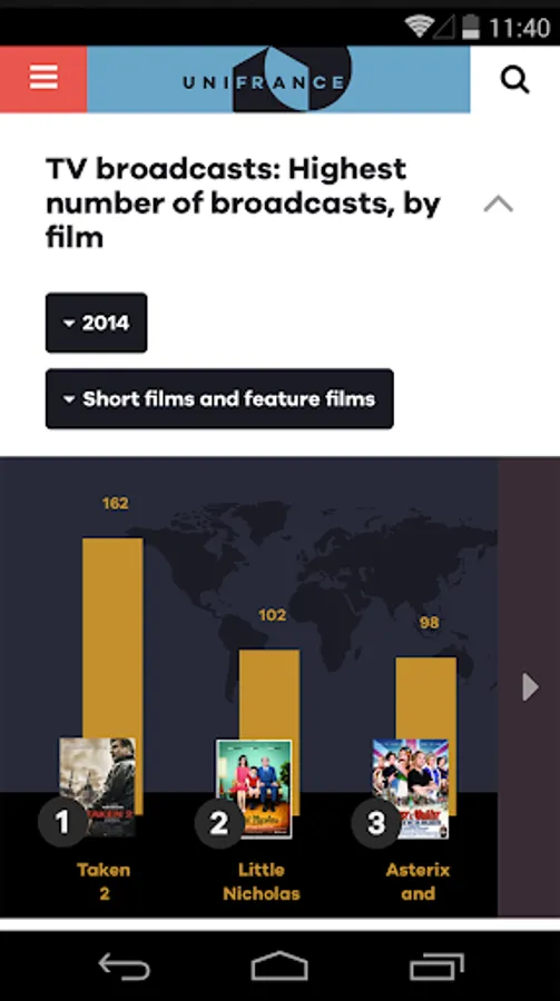 UniFrance, the organization responsible, since 1949, for promoting French cinema worldwide, offers film enthusiasts the possibility of exploring the world of French films via its eponymous app (available on mobile phones and tablets).