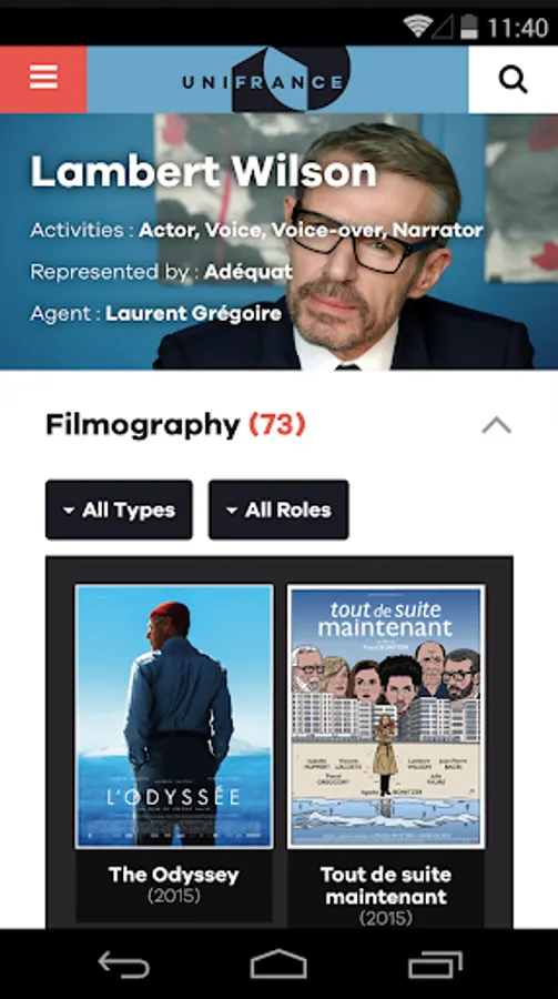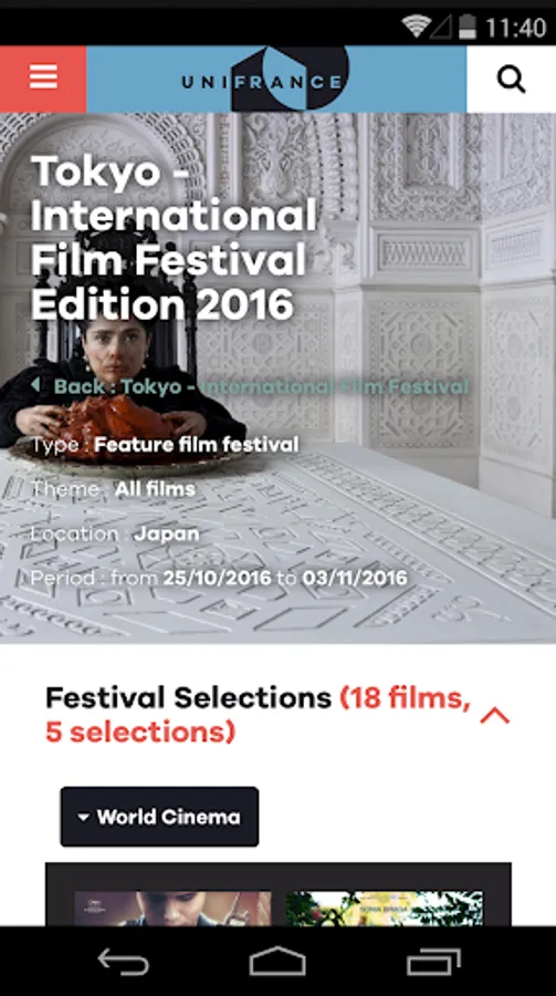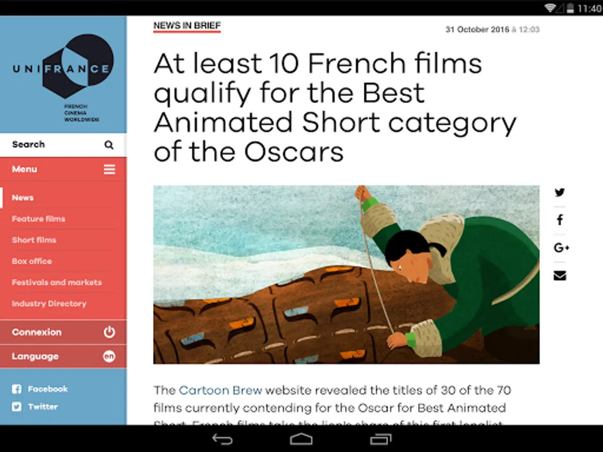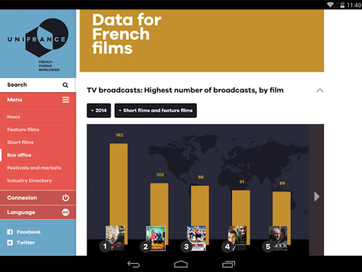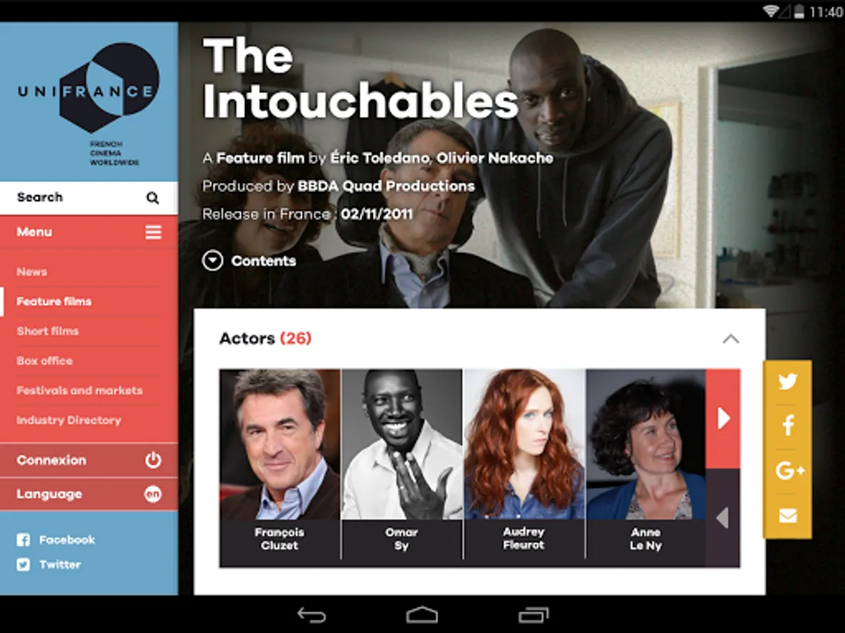 The "UniFrance" app - free and trilingual (French, English, Spanish) - is intended for film industry professionals and the general public alike, and allows for a total immersion in the world of French cinema and its international reach and impact.