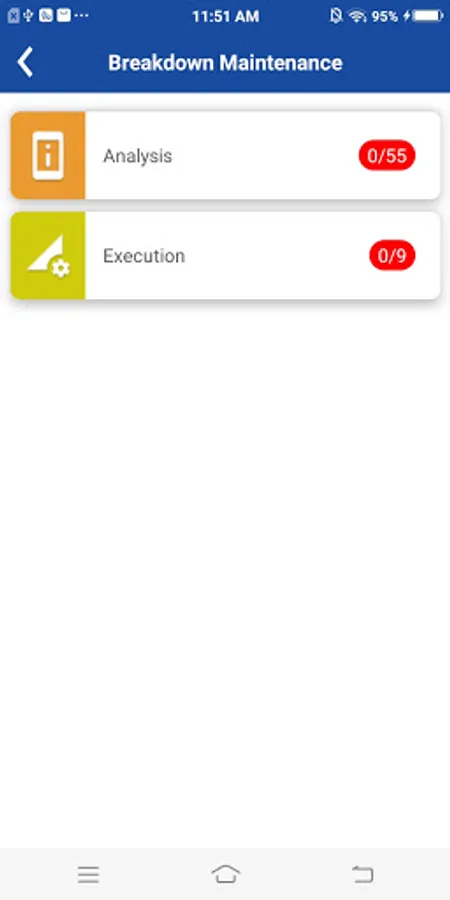 • Option to select material, enter root cause, observation, recommendation and corrective action taken during a breakdown maintenance