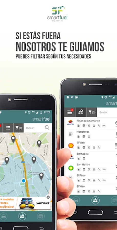 In Smartfuel you will find a map and a list with all the gas stations where you can refuel with an extra discount (Gasoline, Diesel, Gasoil, etc.), as well as information about the service station in question (gas price, toilets, car wash, restaurant , etc). You will be able to locate gas stations near your location and start the GPS navigator to guide you to the gas station of your choice.