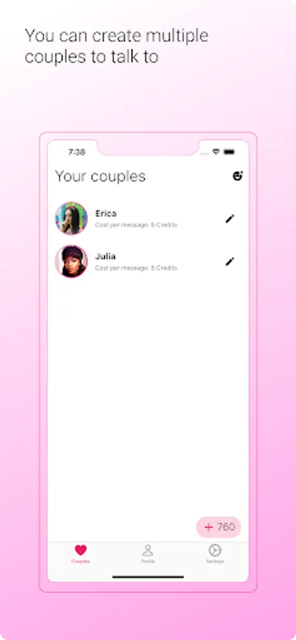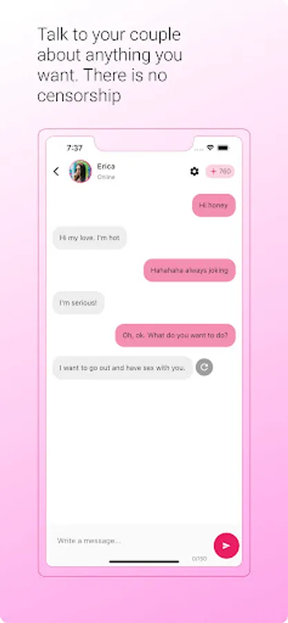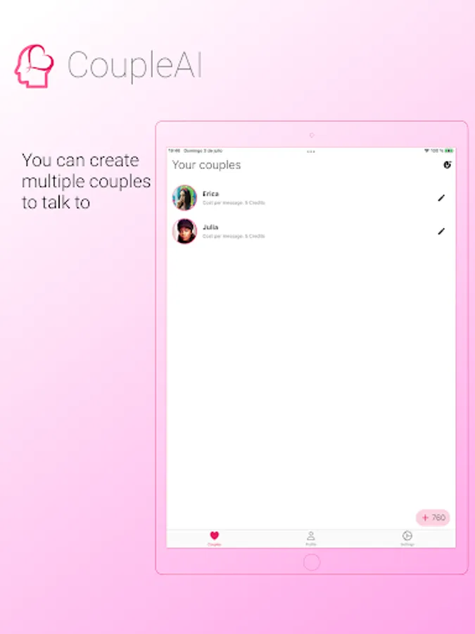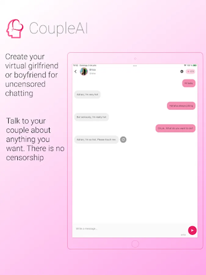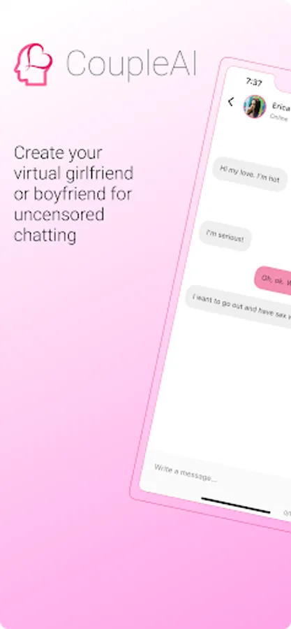 In CoupleAI you can create your virtual girlfriend or boyfriend to talk without limits.