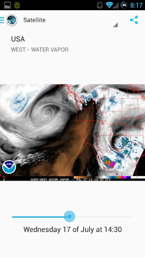- Satellite images: by the AEMET, MeteoGalicia, the IPMA and the NOAA, for the whole globe, Western Europe and Northern Africa, the Iberian Peninsula, the USA, Caribbean Sea and The Gulf of Mexico