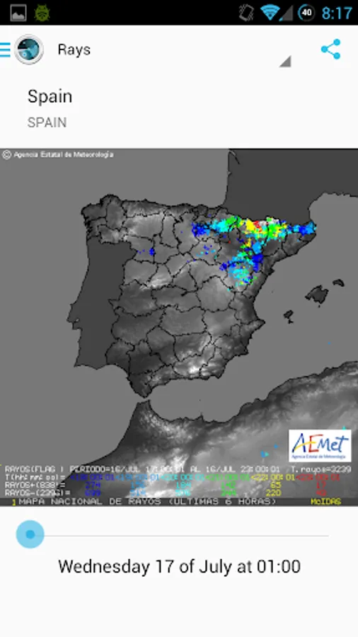 - Lightning detection images: by the AEMET, for Spain