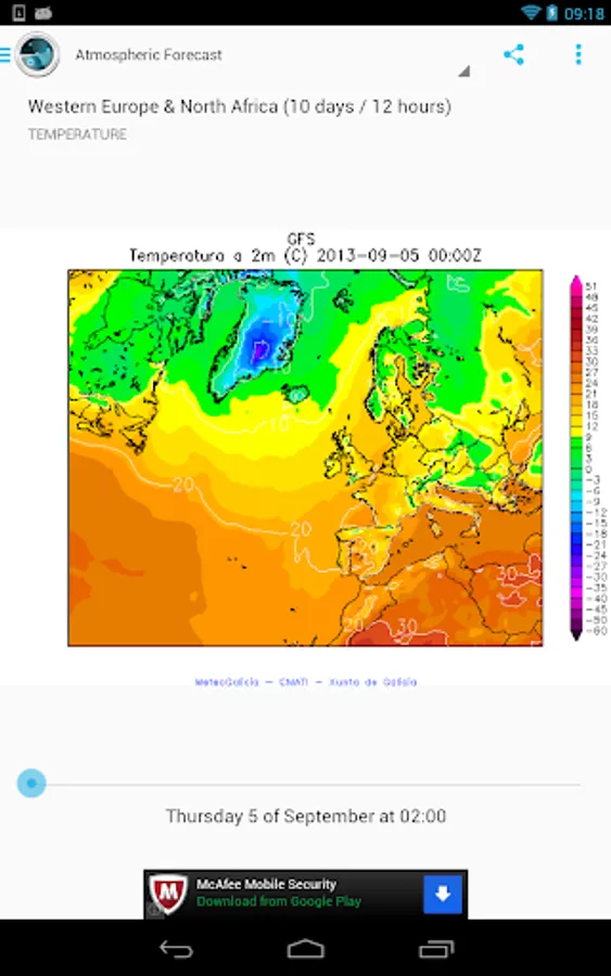 As well, you can see the last imagery captured by the satellites, lightning detection, and the weather forecast for different areas in America, Europe, the Iberian Peninsula, Northern Africa and Spain.