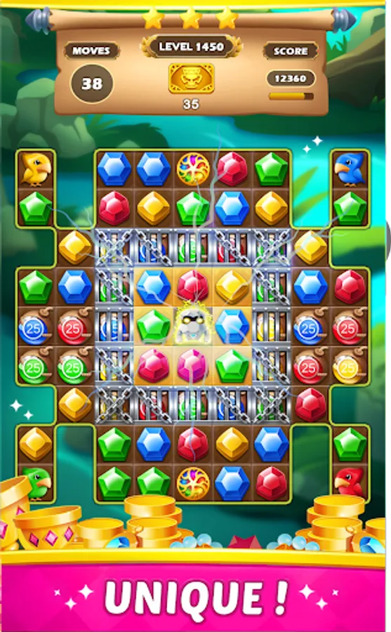 Classic Match 3 games in Google Play. It is simple and fun, but also quite challenging. Easy to play, difficult to master. All levels are designed attentively. Your mission is to win the Jewels Stars. Pass these match 3 jewel levels and try to get all jewel stars in each level to unlock castles.