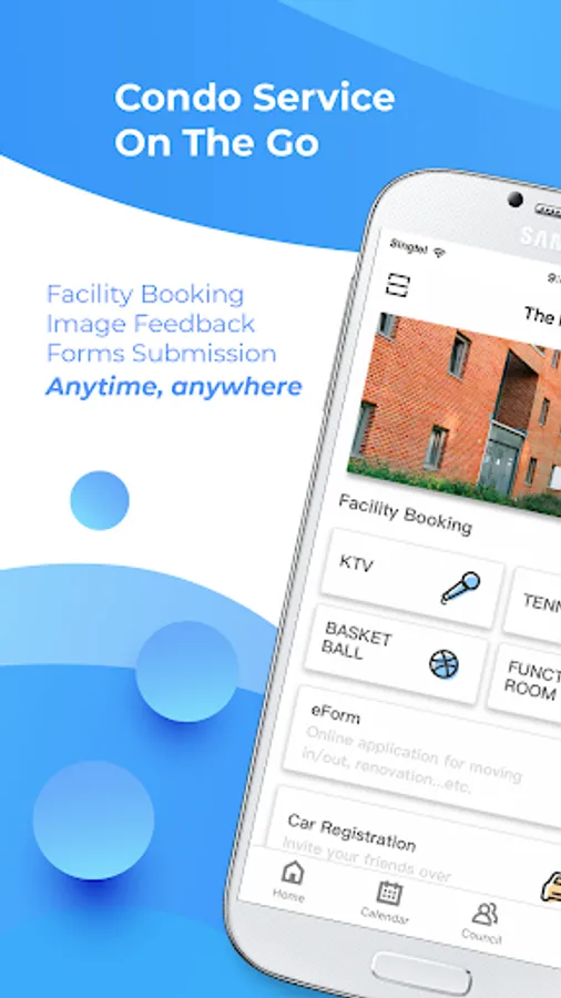 You can book facilities via the APP and pay deposits and fees through the embedded digital payment gateway. You are able to report facility breakdown and repairs with the APP and rate the service quality online.