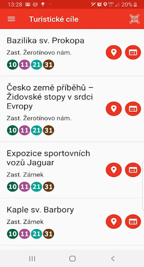 Using QR codes, you can instantly view departures from a stop at which the passenger is located.