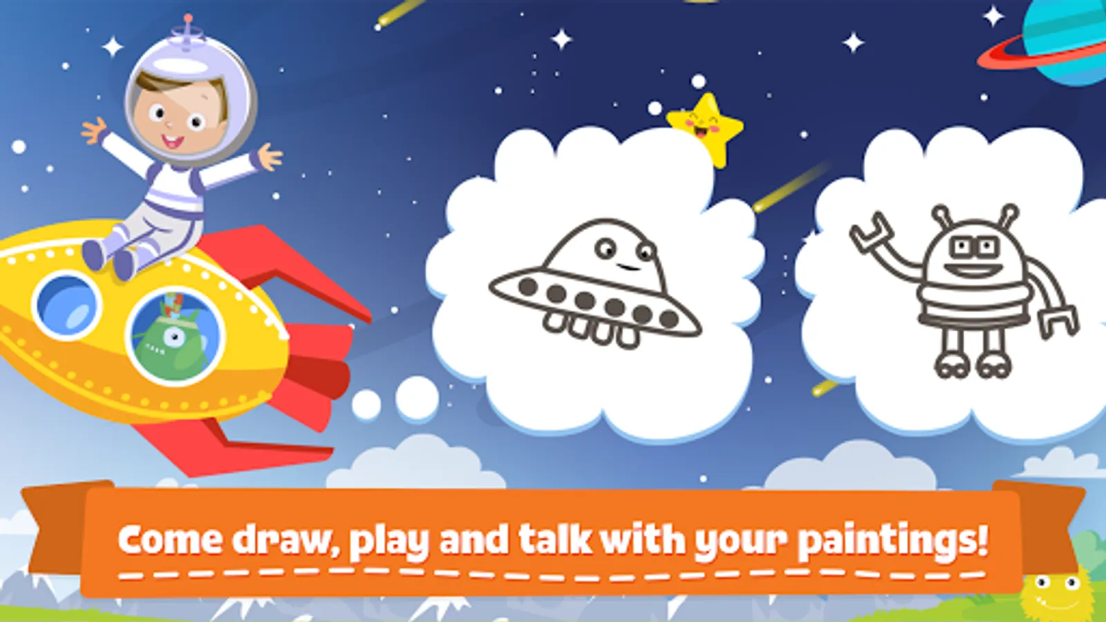 Download this kids' app for free and let your girl or boy aged 2, 3, 4 or 5 years old to draw, play and talk to their pictures.