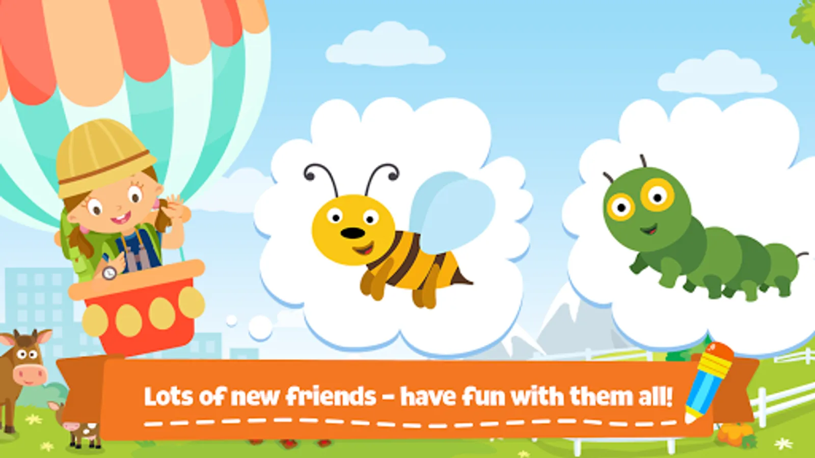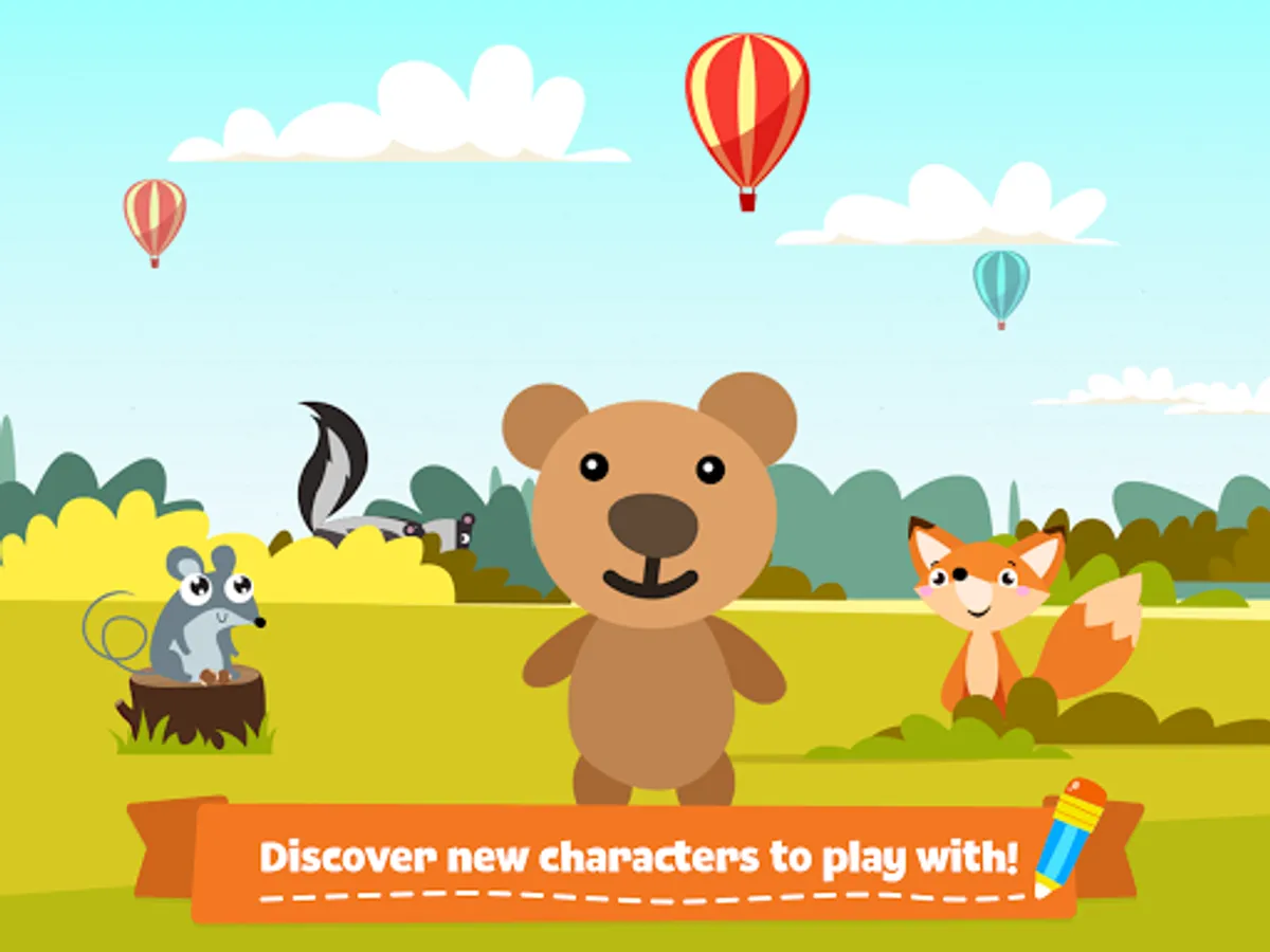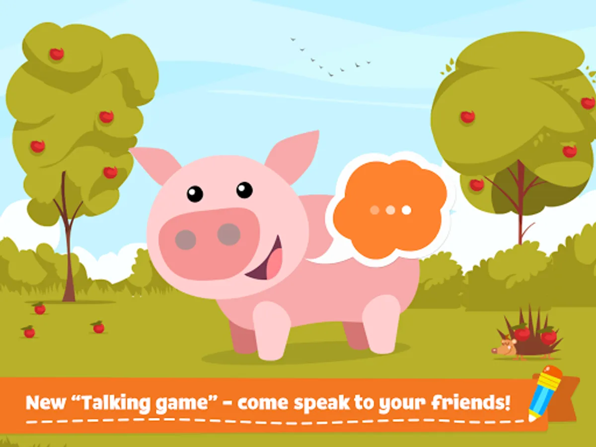 Would your child like more pictures to draw and play with? No problem at all – 25 cute pictures to draw, play and talk: a train, a pig, pandas, a dog, a kitty, an airplane, bear, a bird, a goose, a duck, a rocket, an UFO, a robot, a unicorn, a dinosaur, an air balloon, a bee, a car, a snail, a caterpillar, a submarine, a fish, a whale, a turtle, a penguin. These are not just pictures – these are 25 animated worlds full of fun! And more are coming soon! Just do stay tuned!