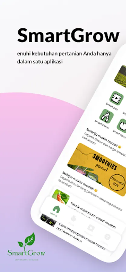 This application focuses on education and utilization in the agricultural sector, as a medium for improving the quality of farmers and agriculture in Indonesia. This smartgrow application can be accessed by all people who want to learn and get to know more about today's agriculture.