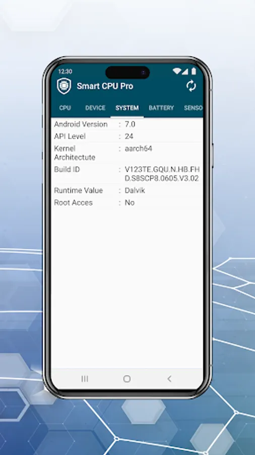 - SYSTEM (android version, API level, kernel, Build ID, Root Acces, etc. )