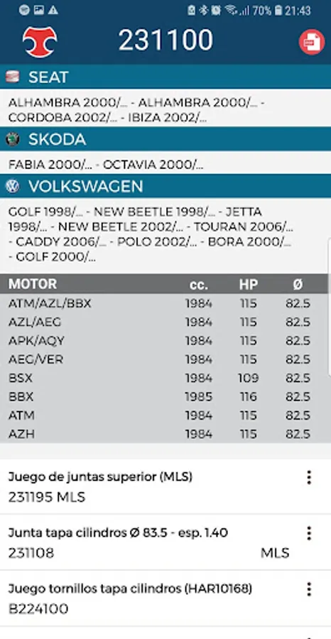 Taranto, has a wide line of auto parts, gaskets, seals, screws, clutches, transmission, suspension and steering.