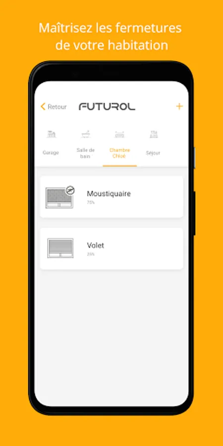 The FUTUROL application allows you to remotely control your locking systems, roller shutters and garage doors from your smartphone.