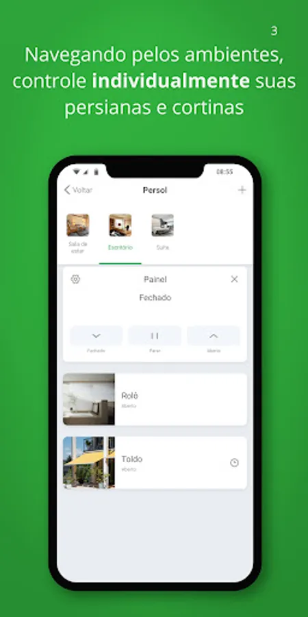 Control your Persol motorized blinds and blinds with your smartphone. Integrate them into your home automation with the Amazon Alexa and Google Home apps.