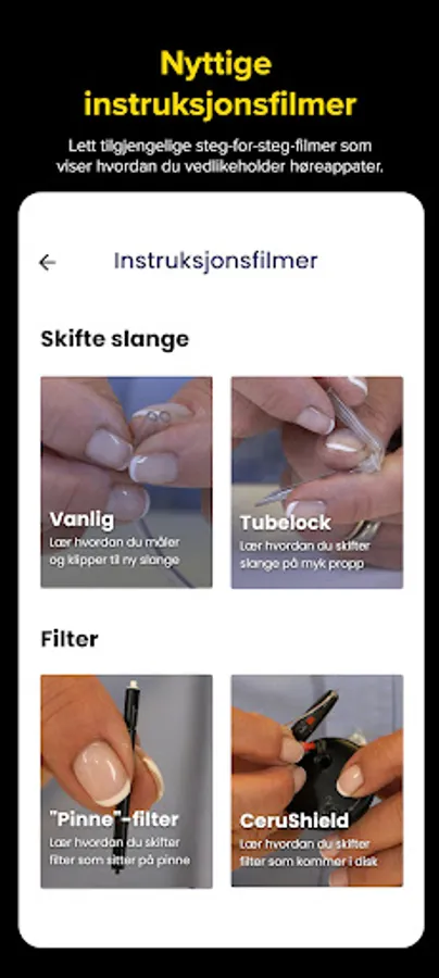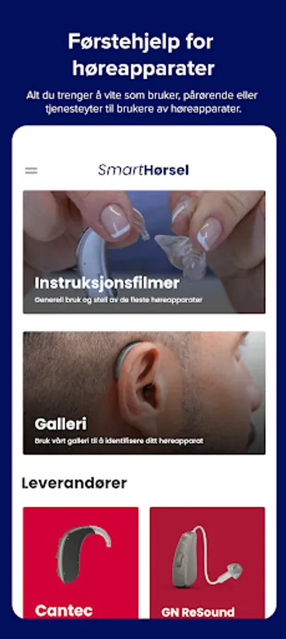 User-friendly guidance and concrete instructions on the use and care of hearing aids. The goal is easily accessible knowledge about hearing aids for users, relatives, healthcare workers and others.