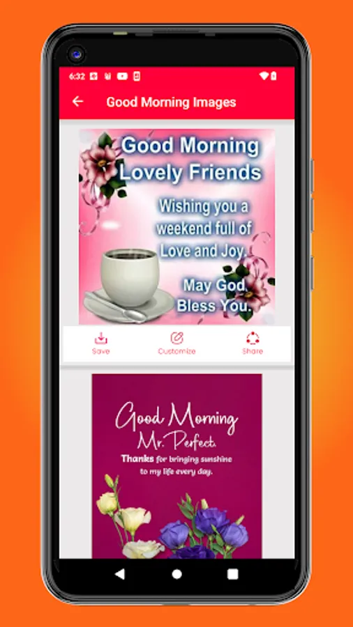 Enjoy our daily Good Morning Greeting Wishes App and share beautiful gif,images,quotes and customizable photo frames to your friends, family members👨👧👧👨👩👦👦 and loved ones😍🥰 !!
