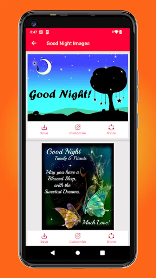 Enjoy our daily Good Night Greeting Wishes App and share beautiful gif,images,quotes and customizable photo frames to your friends, family members👨👧👧👨👩👦👦 and loved ones😍🥰 !!