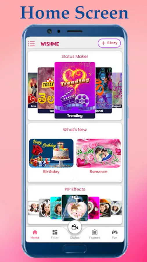 WishMe is a Lyrical Video Status Maker and Particle Photo Status maker. You can create Lyrical Photo Status, Birthday Video Status, Anniversary Video Status, Magical Video Status, MV Video Status and many other awesome videos.