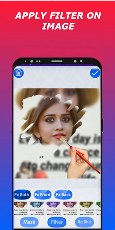 Use different PIP styles in the app to make your selfies and photos original and beautiful. There are many styles in the pip collection. You can put photos in the glass, cup, mirror, the tablet, snowflake, car mirror and etc.