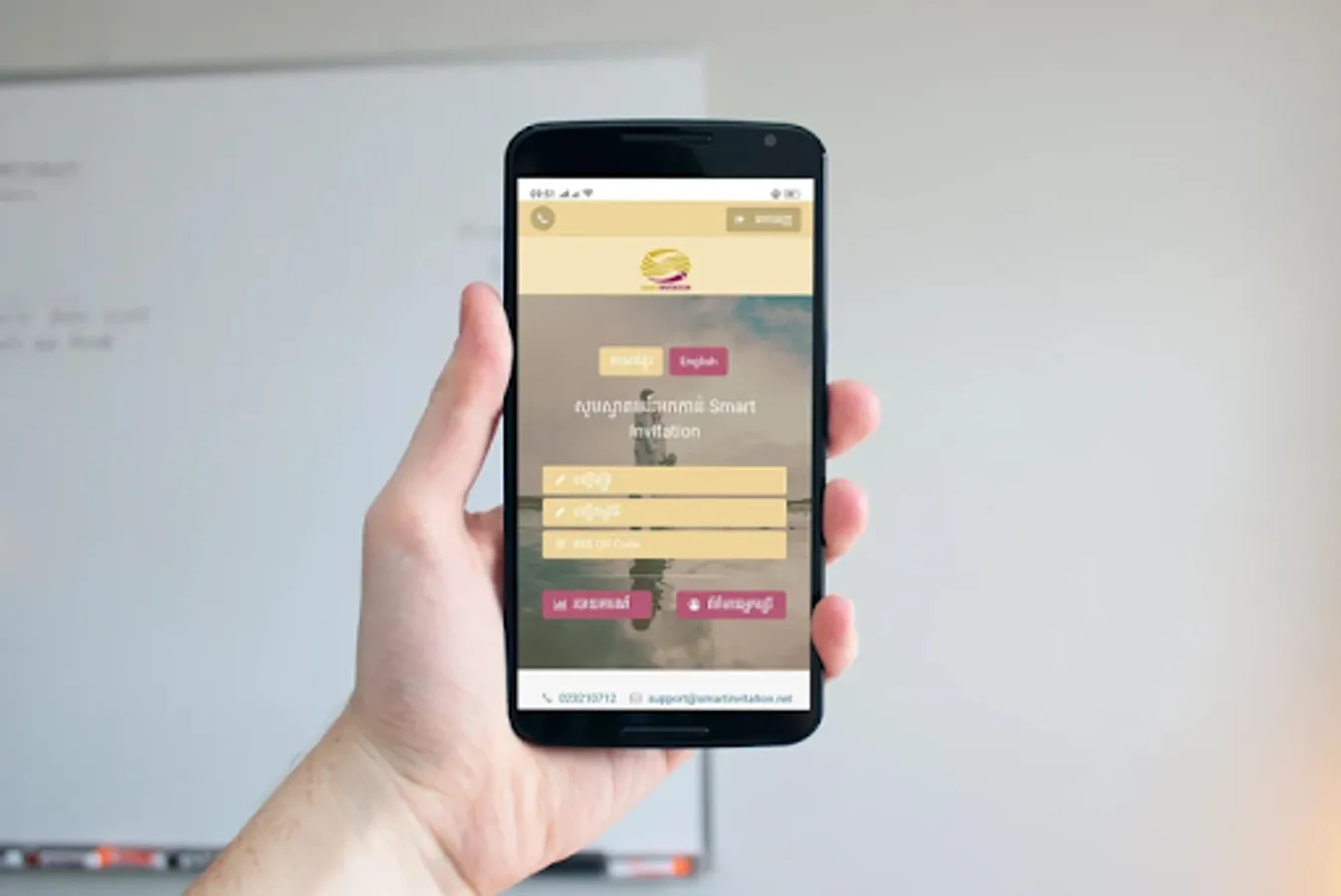 យើងគ្រប់គ្នាប្រហែលជាធ្លាប់ជួបប្រទេះម្តងម្កាល ឬ ជារឿយៗស្ទើរគ្រប់ពេលតែម្តង នូវភាពលំបាកក្នុងការៀបចំ គ្រប់គ្រងចាត់ចែងអញ្ជើញភ្ញៀវកិត្តិយសសម្រាប់កម្មវិធី តូចធំផ្សេងៗ។ ឧទារហណ៍៖ ការរៀបចំឈ្មោះភ្ញៀវសម្រាប់អញ្ជើញ ការរៀបចំបញ្ជី ទំនាក់ទំនង ការកត់ត្រាបញ្ជីរចំណងដៃ ឬ មិនដឹងថាត្រូវសង់ចំណងដៃទឹកប្រាក់ចំនួន ប៉ុន្មានពេលចង់ត្រលប់ទៅវិញ។ Smart Invitation គឺជាដំណោះស្រាយដ៏ ល្អបំផុតសម្រាប់ជំនួយដល់យើងគ្រប់គ្នា សម្រាប់ការរៀបចំលិខិតអញ្ជើញជា លក្ខណៈបោះពុម្ភ និងទំាងអេឡិចត្រូនិចព្រមទាំងអាចកត់ត្រារក្សាទុកនៅប្រវត្តិភ្ញៀវ កិត្តិយស ក្នុងកម្មវិធីវិសេសផ្សងៗ។