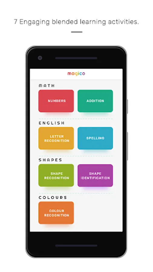 Magico is an educational and fun app which presents the child with basics of Maths, Spellings, and Shapes in the form of engaging games and activities.
